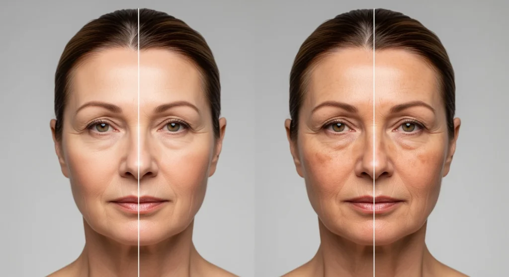 Oba typy zmniejszają ilość UV docierającego do skóry, ograniczając uszkodzenia DNA, mutacje i stres oksydacyjny. Dzięki temu chronią przed oparzeniami, fotostarzeniem, przebarwieniami i rakiem skóry (w tym czerniakiem). Dobre kremy „broad spectrum” działają na UVB i UVA, chroniąc głębsze warstwy skóry i włókna kolagenu oraz elastyny odpowiedzialne za jędrność.